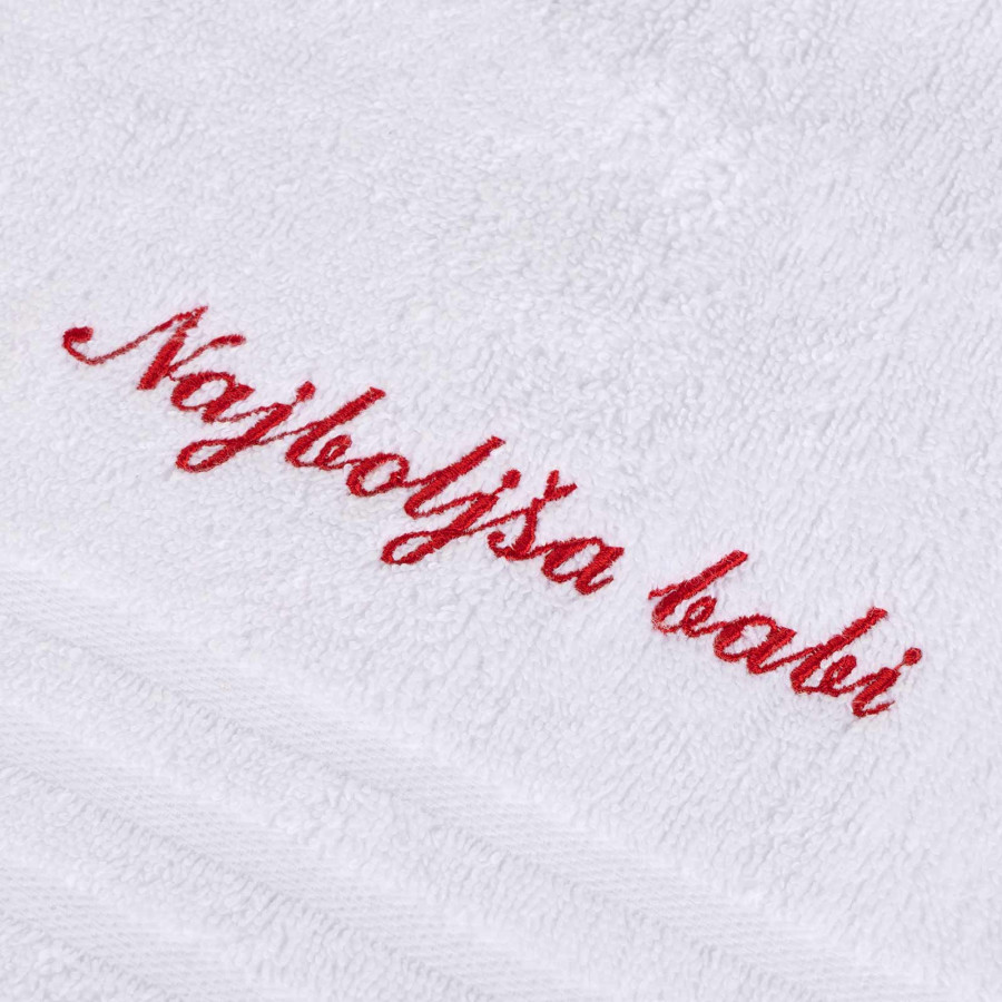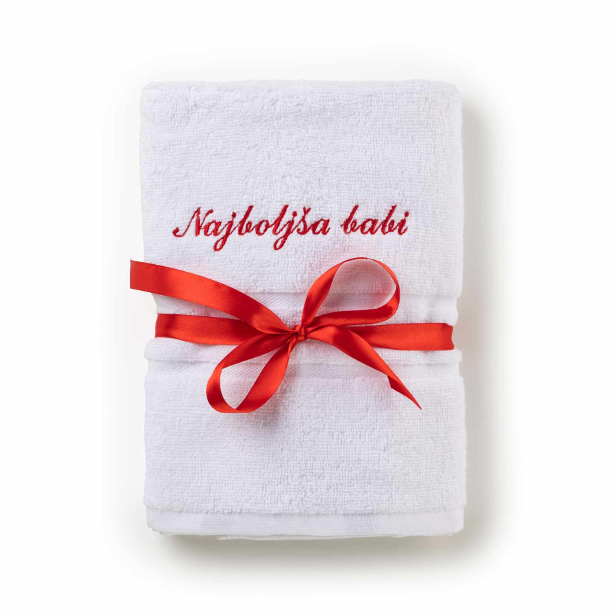 Svilanit kopalniška brisača Purity z vezenino – Najboljša babi