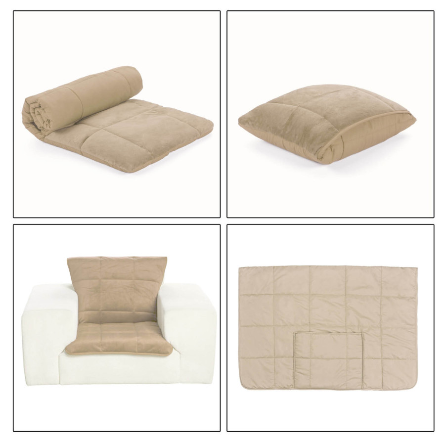 Večnamenska dekorativna odeja SoftTouch 4v1 vas bo navdušila s svojo funkcionalnostjo saj jo lahko uporabljate kot odejo, vzglavnik, pregrinjalo, ali kot praktičen žep za noge. Prav vam bo prišla doma na kavču ali kot odeja za v avto. Nepogrešljiva bo tako na pikniku kot kampiranju. Izdelana je iz kakovostnih in mehkih mikrovlaken ki so izredno tanka in zato prijazna do vaše kože. Mehka in gladka stran nudita različne možnosti uporabe. Mehka stran je primerna za razvajanje, gladka pa s prešitjem preprečuje drsenje na različnih podlagah. Odeja je pralna na 40 °C.