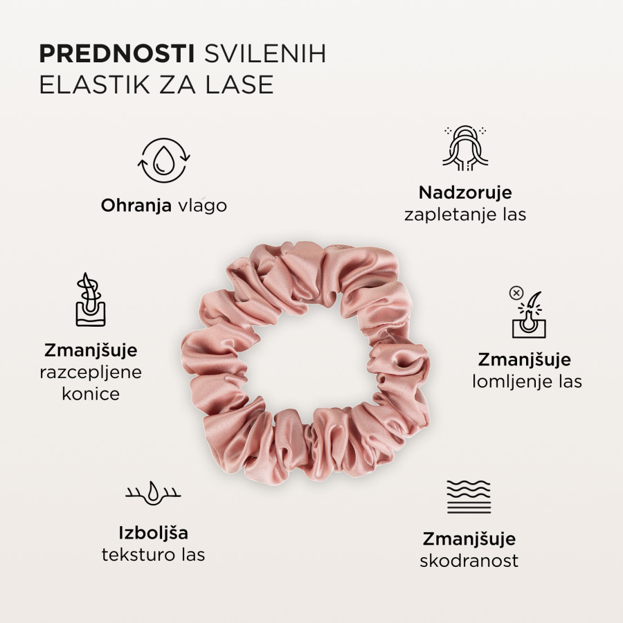 Ste naveličani elastik, ki lase vlečejo, lomijo ali puščajo vidne sledi? Svilanitove elastike iz 100 % murvine svile so ustvarjene kot nežen odgovor na vse težave, ki jih povzročajo navadne gumice. Svila zaradi svoje gladke strukture zmanjša trenje, preprečuje lomljenje in lase ohranja mehke, sijoče ter naravno oblikovane.