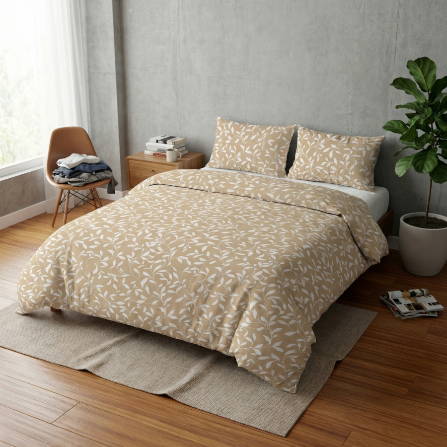 Posteljnina iz 100 % bombaža renforce. Bodite v objemu naravnih in mehkih materialov. Z vsakim ponovnim pranjem še mehkejša. Enostavno vzdrževanje in likanje.