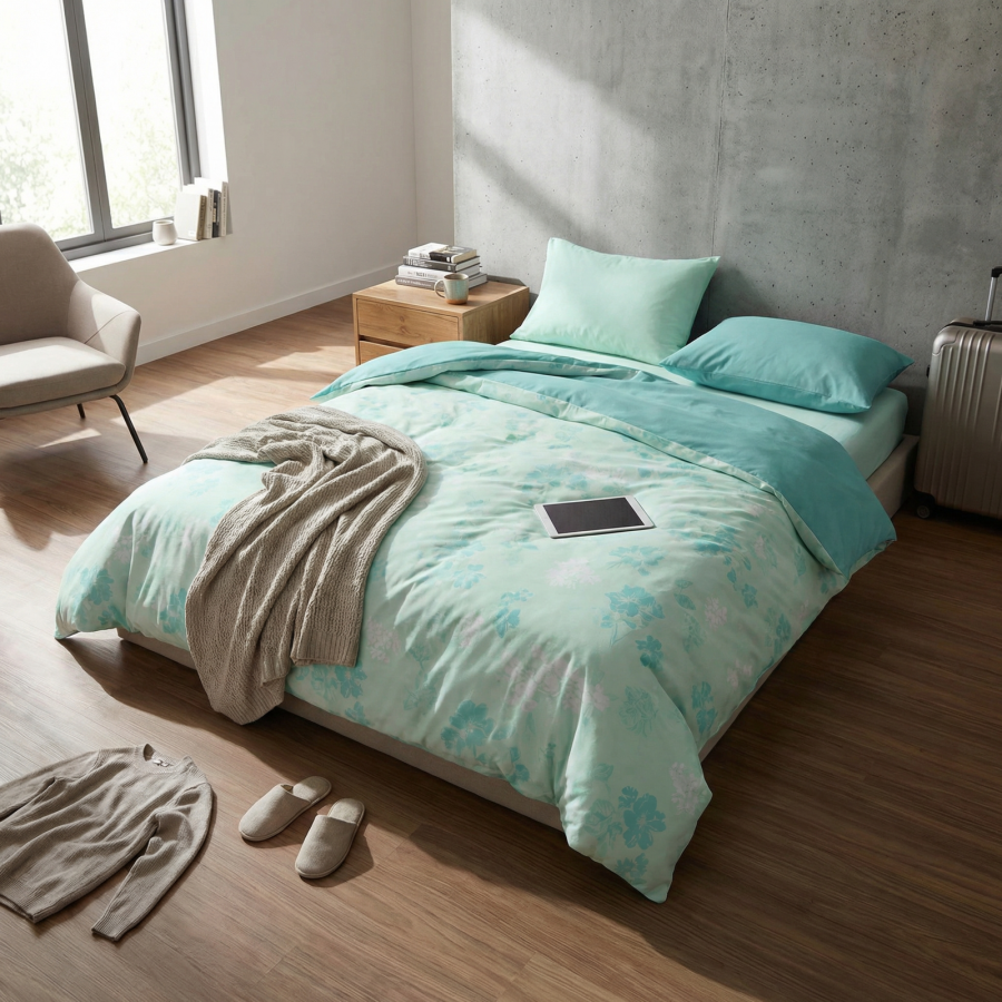 Posteljnina iz 100 % bombaža renforce. Bodi v objemu naravnih in mehkih materialov. Z vsakim ponovnim pranjem še mehkejša. Enostavno vzdrževanje in likanje.