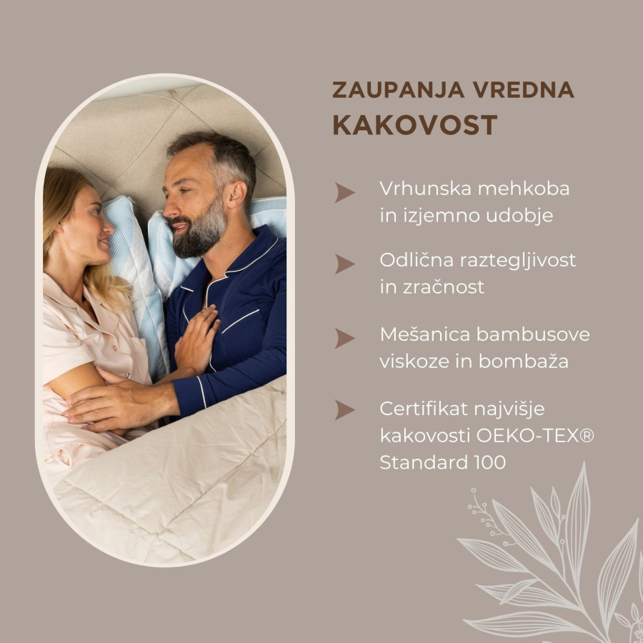 • Izjemna lahkotnost in zračnost – bambusova vlakna uravnavajo toploto med spanjem in dihajo z vašim telesom