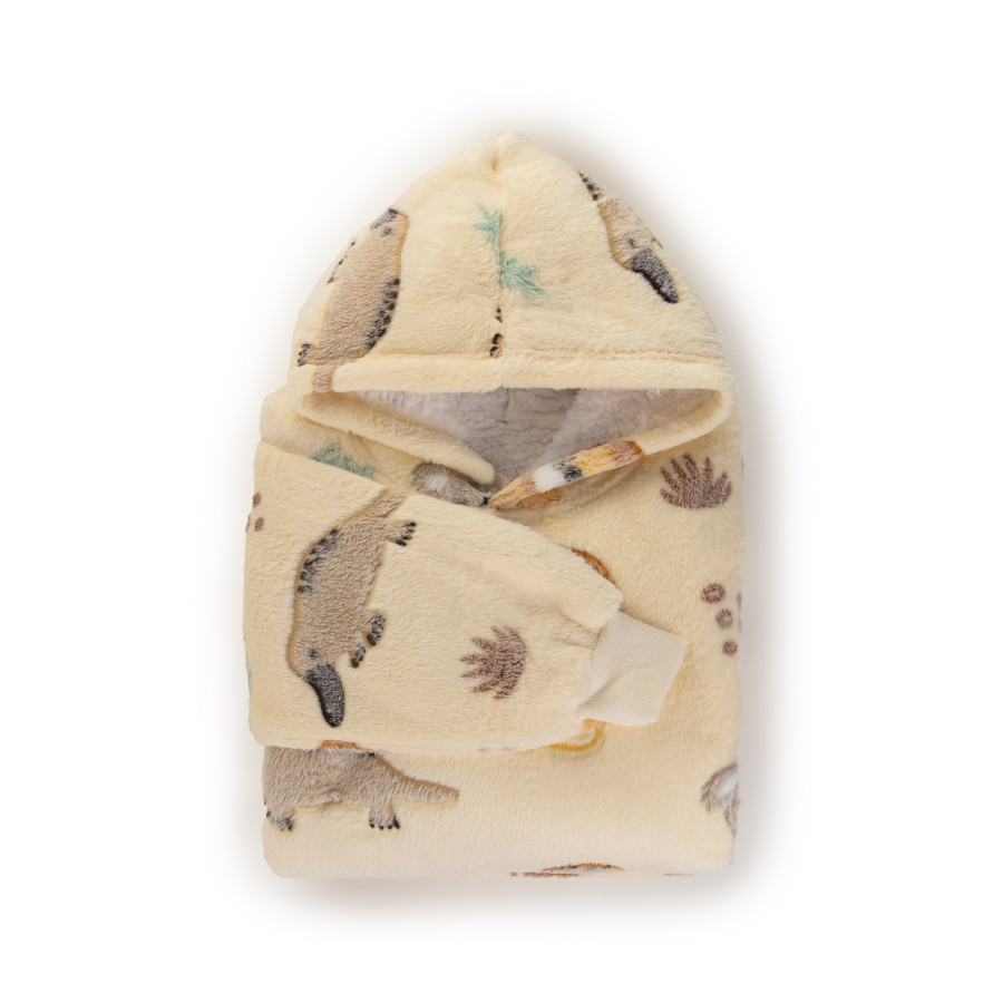 Toplina, ki otroke spremlja tako med gledanjem risank kot med igro na tleh. Darilo: tople nogavice s protizdrsno zaščito. Otroci se počutijo kot v čarobnem plašču, ko oblečejo puhast hoodie s kapuco. Mehak kot plišasta igračka – občutek, ki ga otroci ne želijo spustiti. Popolna izbira za gledanje risank, poslušanje pravljic in igro.