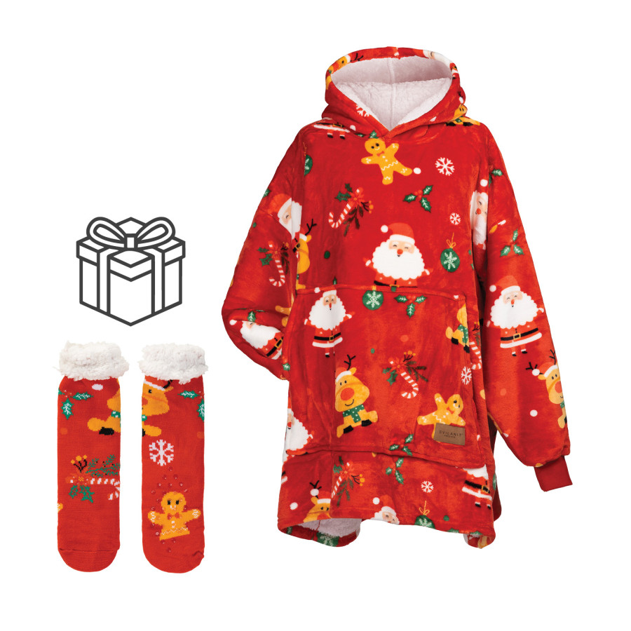 Svilanit otroška hoodie odeja Svilanit XmassJoy + darilo: nogavice