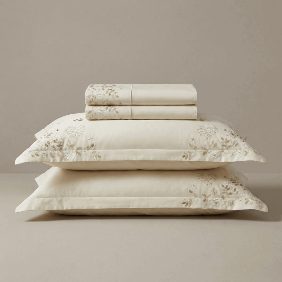 Bombažno-satenasta PREMIUM vezena posteljnina Svilanit Sarah-Beige