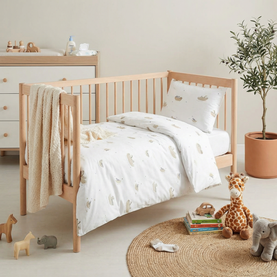Posteljnina za malčke iz 100 % ekološkega bombaža v dimenziji 100 x 140 cm. Certifikat GOTS zagotavlja ekološko in trajnostno izdelavo brez škodljivih snovi. Mehki materiali za nežno otroško kožo. Z vsakim ponovnim pranjem še mehkejša.