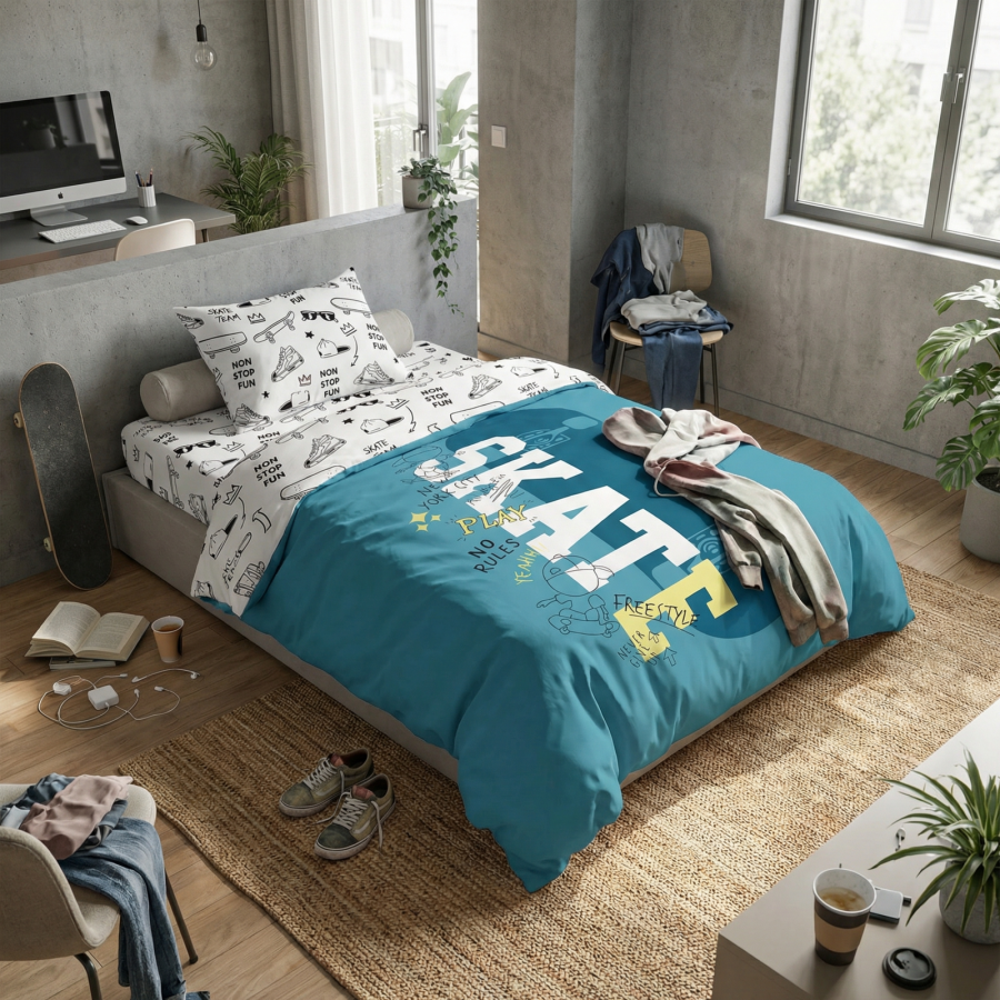 Otroška posteljnina iz 100 % bombaža v dimenziji 140 x 200 cm. Mehki materiali za nežno otroško kožo. Z vsakim ponovnim pranjem še mehkejša. Enostavno vzdrževanje in likanje.
