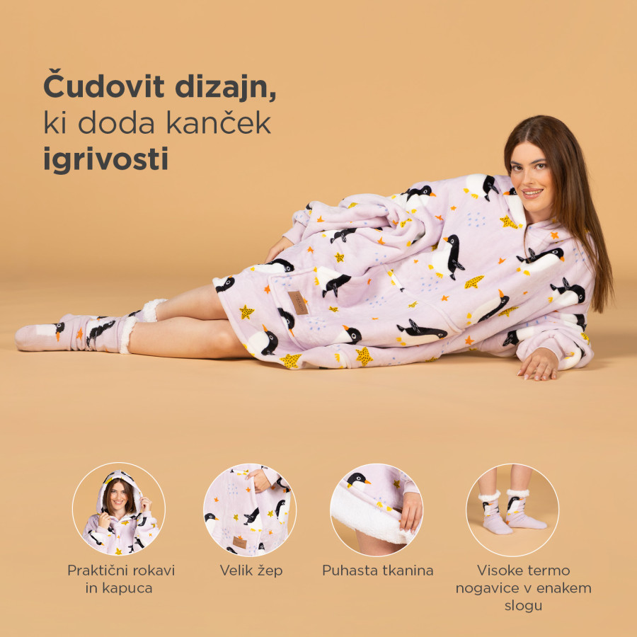 Svilanit hoodie odeja WinterPengu + darilo: nogavice